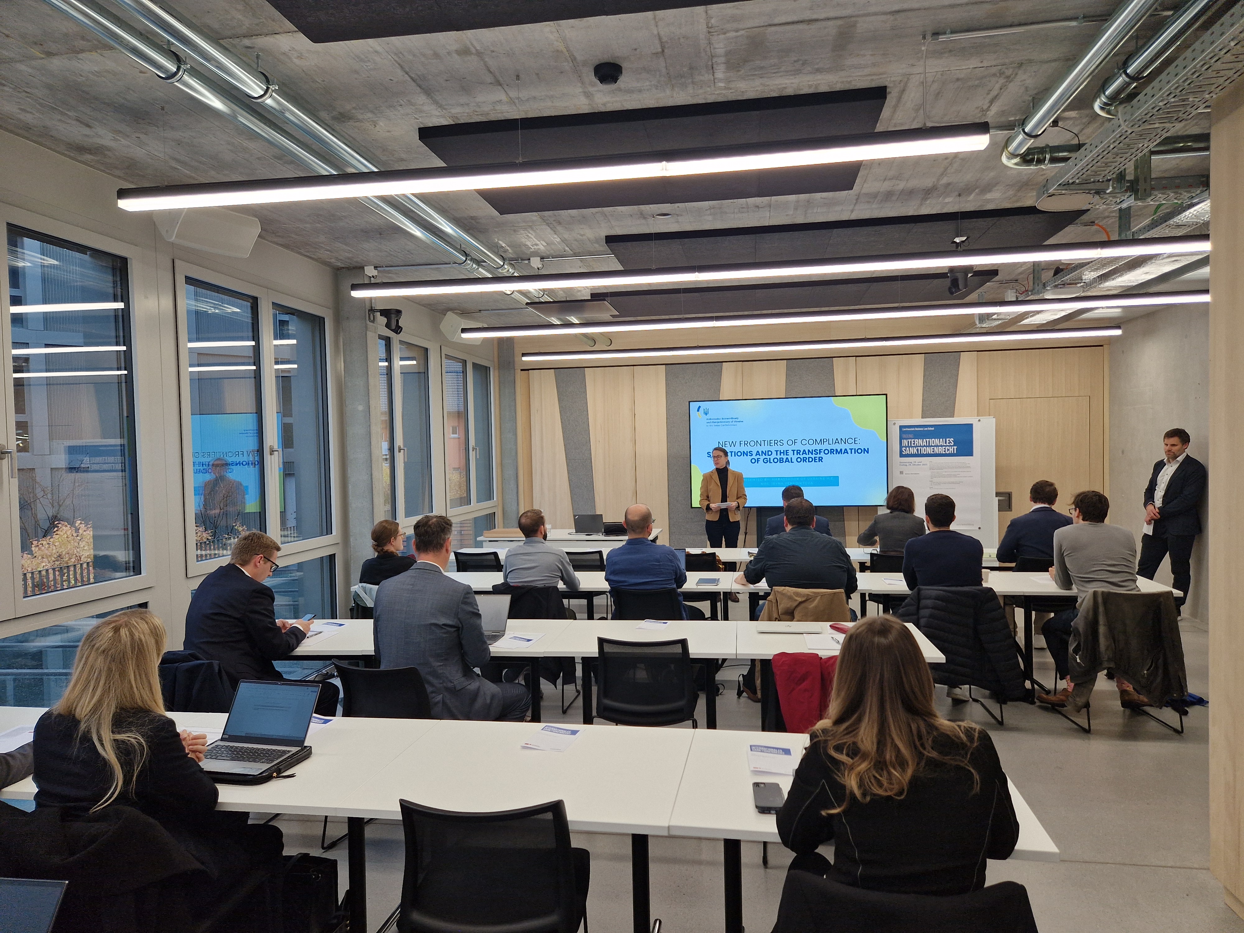 Zum Auftakt referierte Prof. Dr. Iryna Venediktova, Ausserordentliche und Bevollmächtigte Botschafterin der Ukraine in der Schweizerischen Eidgenossenschaft und im Fürstentum Liechtenstein, zum Thema «New Frontiers of Compliance: Sanctions and the Transformation of Global Order». Wir freuen uns sehr, dass Botschafterin Venediktova zusammen mit Botschaftsrat Samvel Arustamian eigens für den Kurs aus Bern angereist ist.