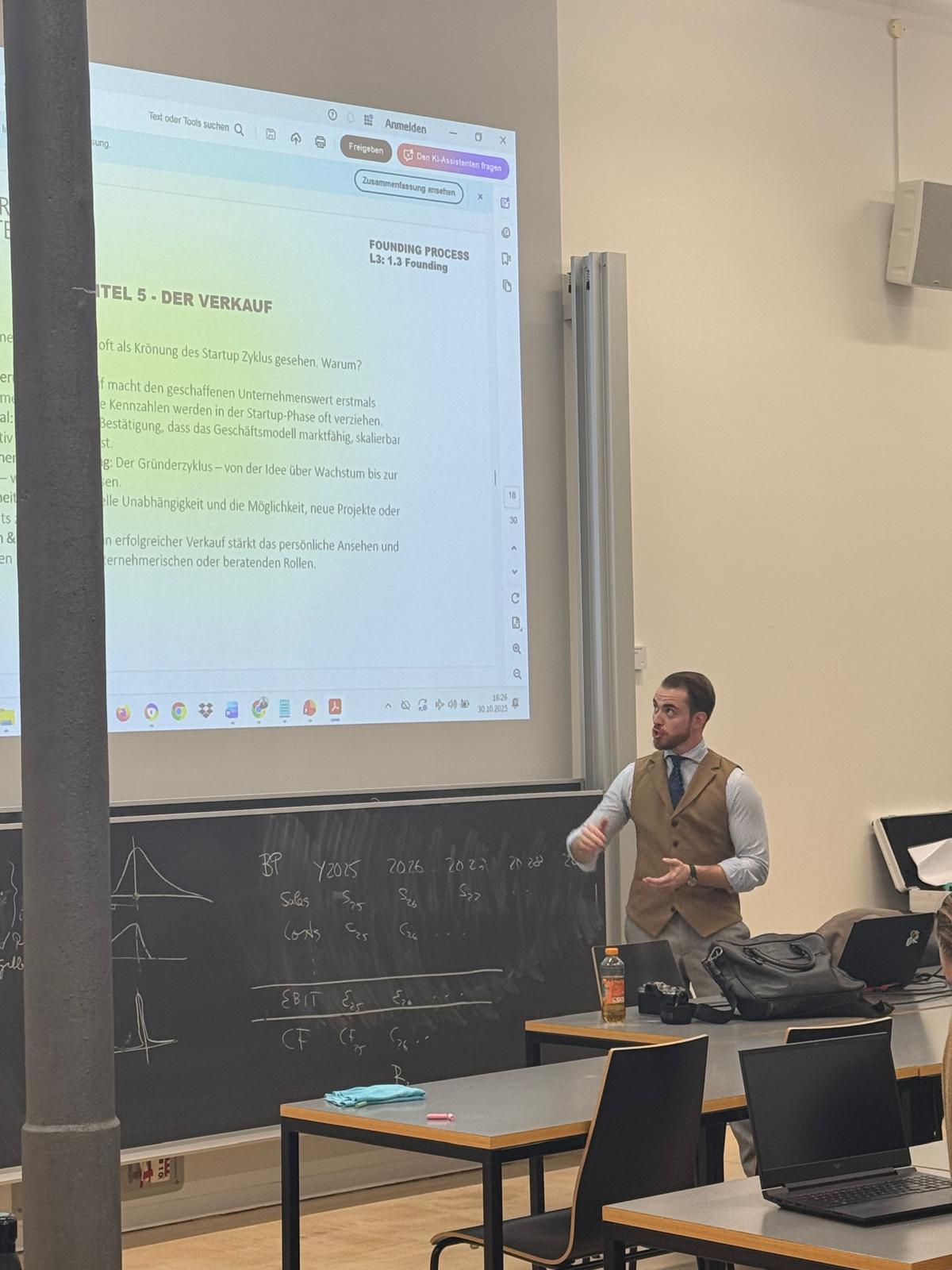 At the invitation of Prof. Dr. Leo Brecht, Max Meier was a guest speaker in the lecture “Entrepreneurial Founding Process.” The event took place on Wednesday, October 29, 2025, and Thursday, October 30, 2025, with Max Meier's guest lecture taking place on Thursday, October 30, 2025.
