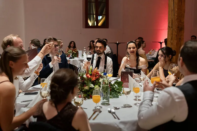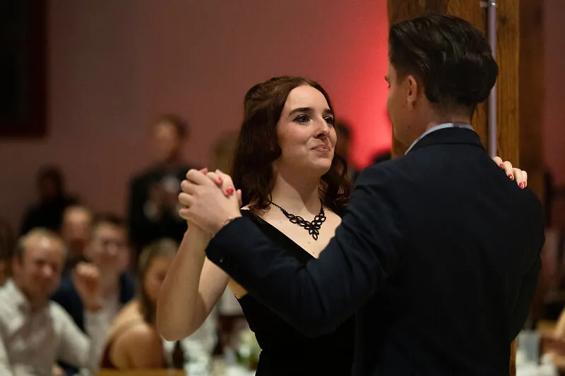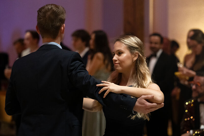 The dance floor was opened with the traditional opening dance performed by seven student couples from almost all bachelor's and master's programs, choreographed by Iva Eberle from the Liechtenstein Dance Club. This was followed by a passionate dance performance by the Tango Liechtenstein association. At midnight sharp, the guests gathered for the traditional highlight, the midnight quadrille to Johann Strauss' “Die Fledermaus,” during which everyone present was invited to dance together.